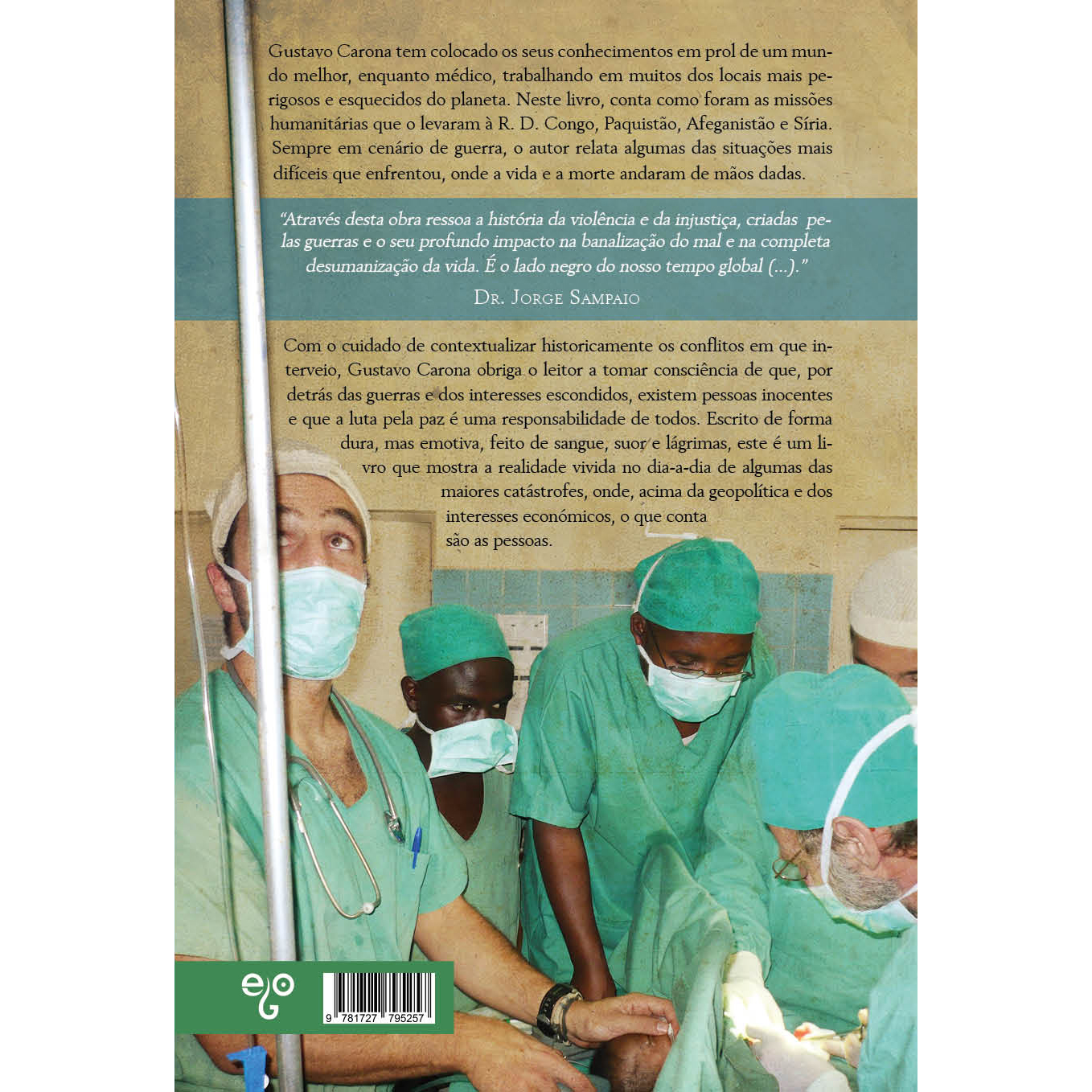 Gustavo Carona tem colocado os seus conhecimentos em prol de um mundo melhor, enquanto médico, trabalhando em muitos dos locais mais perigosos e esquecidos do planeta. Neste livro, conta como foram as missões humanitárias que o levaram à República Democrática do Congo, Paquistão, Afeganistão e Síria. Sempre em cenário de guerra, o autor relata, na primeira pessoa, algumas das situações mais difíceis que enfrentou, onde a vida e a morte andam de mãos dadas.