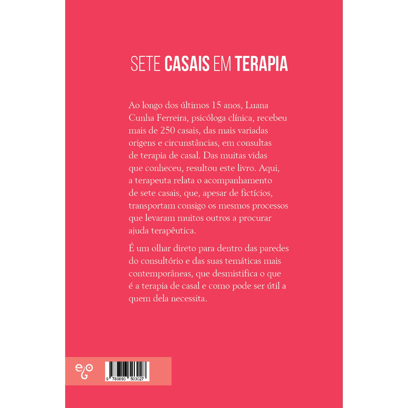 É um olhar direto para dentro das paredes do consultório e das suas temáticas mais contemporâneas, que desmistifica o que é a terapia de casal e como pode ser útil a quem dela necessita.